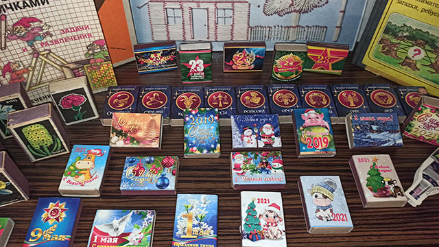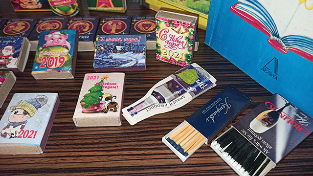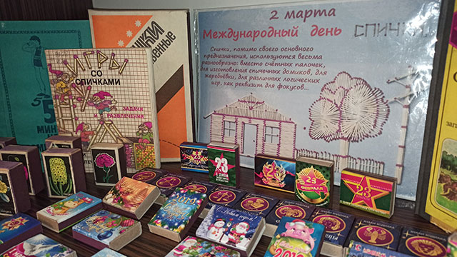 Здесь вы можете увидеть коробки спичек разных лет выпуска, сувенирные спички. Удивляют формы коробков и цвета серы на спичках из Германии, Латвии, Литвы, Украины, Турции, Польши и России. Этикетки на коробках называют мини-энциклопедией, подробно передающей дух определенной эпохи.