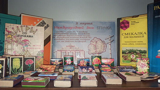 В 50-60 годах вошло в моду коллекционирование спичечных коробков с различными рисунками на них, а некоторые продолжают собирать их и сейчас. На выставке представлены коробки спичек из коллекций друзей и читателей нашей библиотеки: Е. Комаровой, А. Булыко, Е. Корчевец, Д. Старовойтовой.
