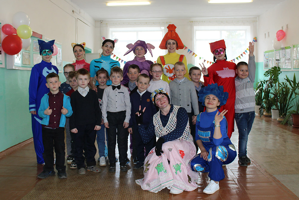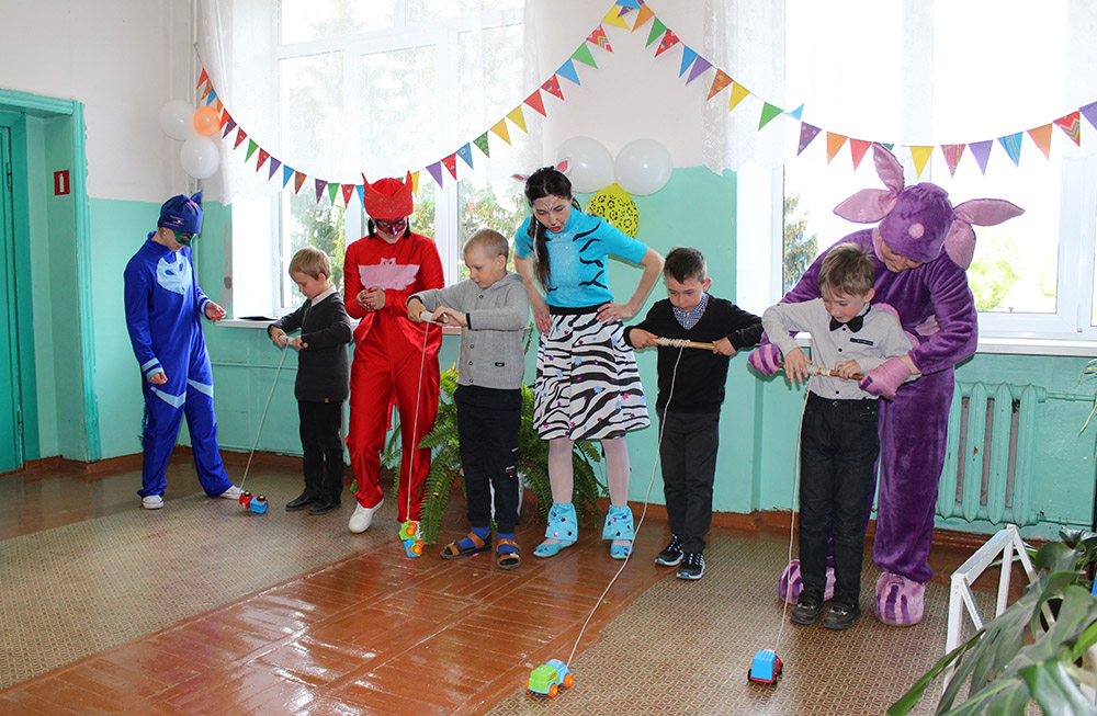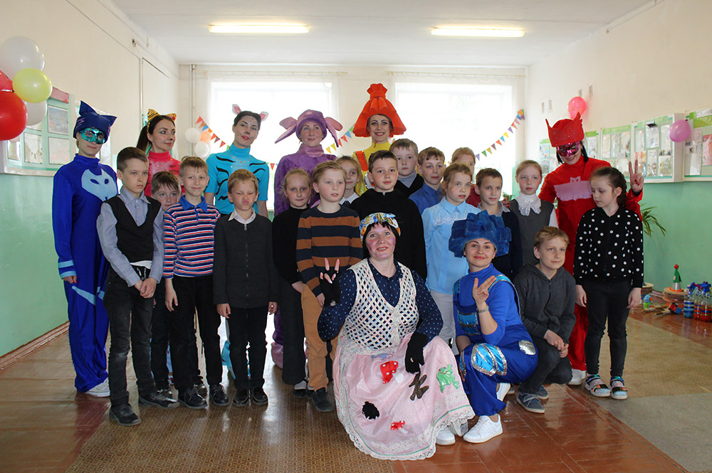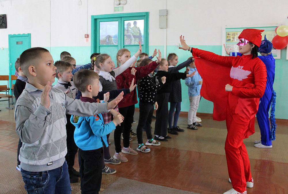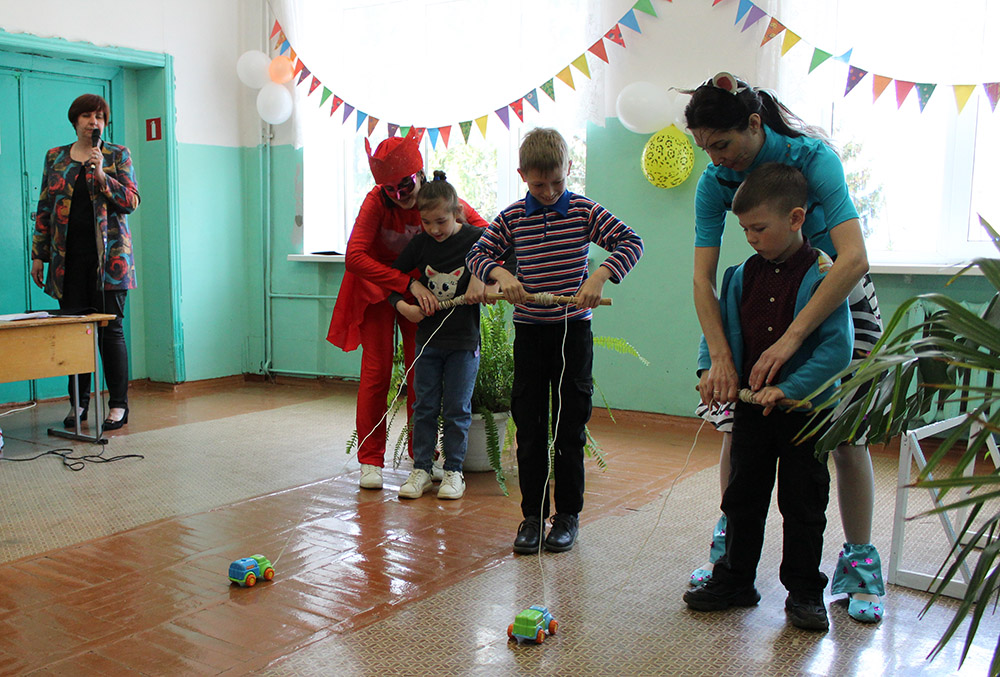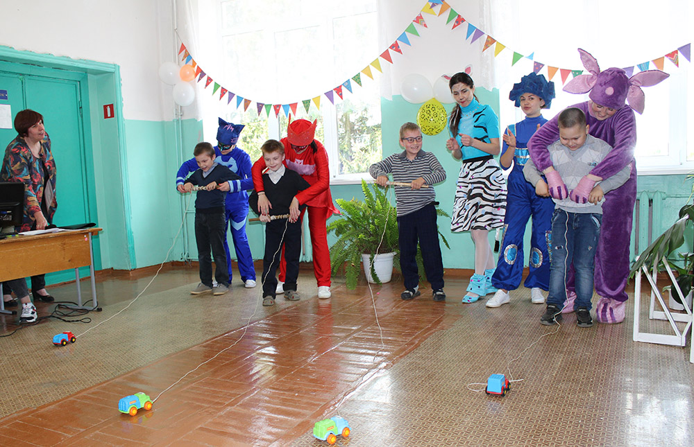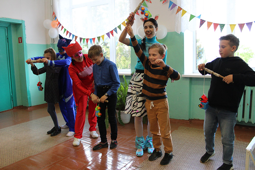 Ребята с радостью помогли фиксикам собрать помогатор и от души повеселились с героями в масках Алетт и Кэтбоем.