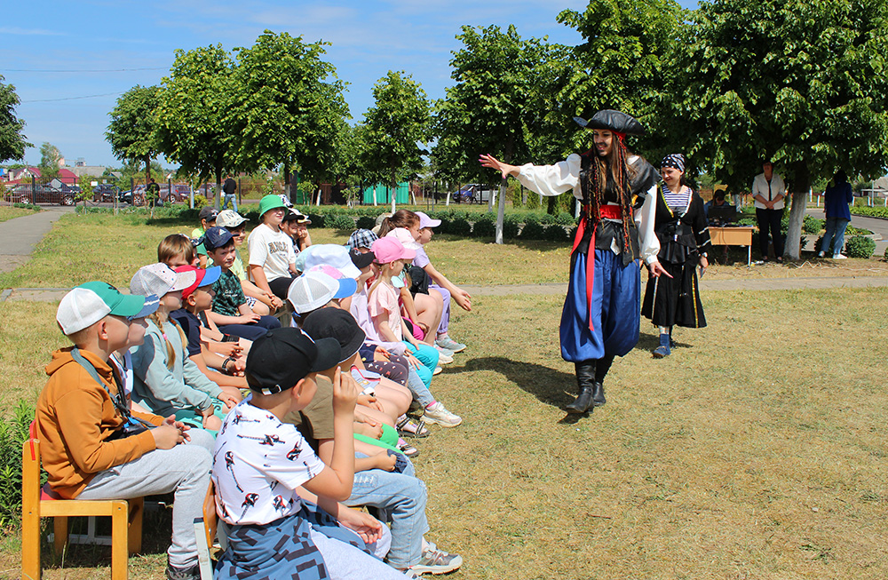 Ребята, посещающие школьный лагерь, познакомились поближе с любимыми героями Розой и Лизой Барбоскиными. Вместе отправились в удивительное путешествие по книжному морю. На пути им встретились удивительные туземки и грозные пираты, а коварная Баба-Яга хотела всех заманить в свой Тик-ток! Море испытаний, игр и зажигательных танцев привело ребят в настоящий восторг! Они показали всю свою эрудированность, смелость, ловкость и пообещали библиотекарям летом не расставаться с книгой, быть дружными и весёлыми.