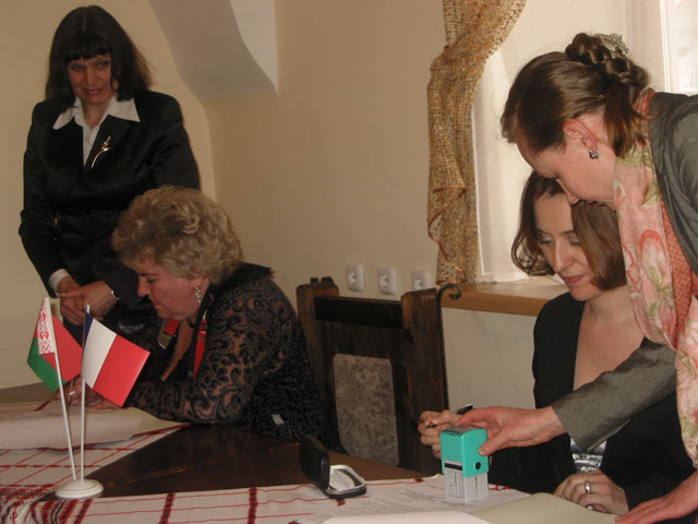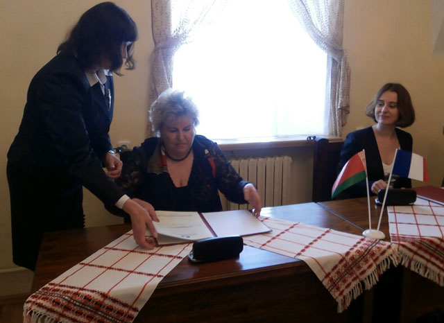 Состоялось подписание соглашения между Французской медиатекой при Посольстве Франции в Республике Беларусь и государственным учреждением культуры «Оршанская централизованная библиотечная система» о передаче книг, дисков детской библиотеке им. В.С.Короткевича. На встрече выступили: заместитель председателя Оршанского районного исполнительного комитета Олег Валерьевич Смирновский, советник по культуре и сотрудничеству Посольства Франции в Республике Беларусь госпожа Эльза Пиньоль, атташе по сотрудничеству в области французского языка при Посольстве Франции в Республике Беларусь госпожа Клер-Элиз Юбер.