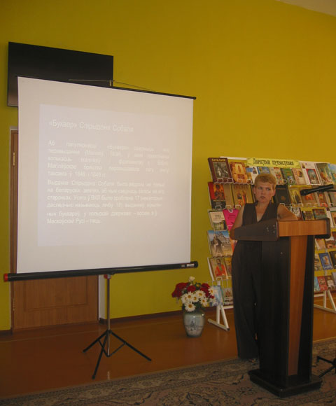 1 июля в Центральной библиотеке им. А.С. Пушкина состоялась презентация  и  лекция факсимильного издания книги «Букварь» XVII века Спиридона Соболя. Презентация «Букваря»  состоялась в рамках  православной выставки-ярмарки «Радость Слова». Перед сотрудниками библиотек, музеев, историками, филологами выступила сотрудник Национальной Академии Наук Республики Беларусь Полищук Н.В., кандидат филологических наук, доцент, заведующая отделением истории белорусского языка центра исследования белорусской культуры, языка и литературы.