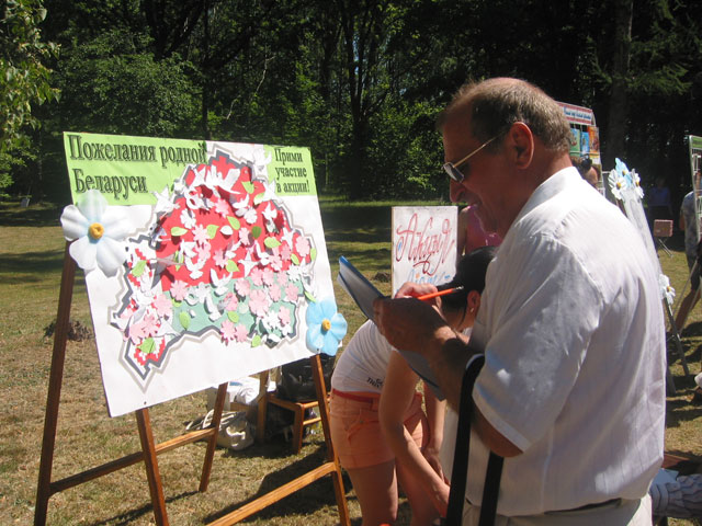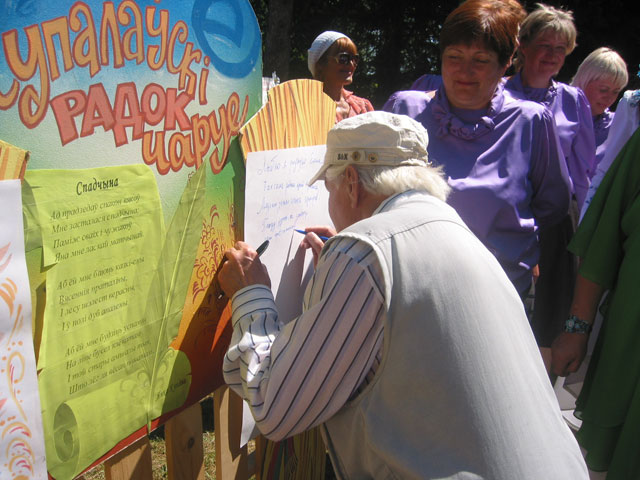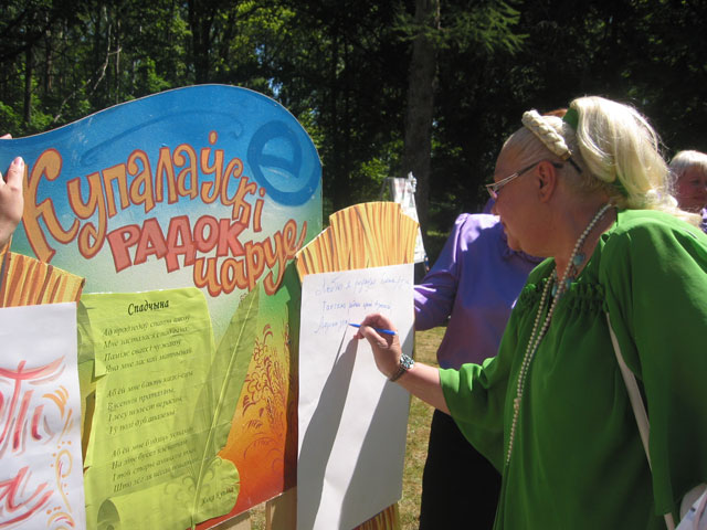 Праграма, якую падрыхтавалі на свята супрацоўнікі Аршанскай цэнтралізаванай бібліятэчнай сістэмы была яркай і насычанай. Бібліятэкары запрашалі гасцей свята прыняць удзел у акцыях “Ліст-зварот да Янкі Купалы”, “Пажаданні роднай Беларусі”, “Намалюй паэзіію”. Прыемна было бачыць, як вядомыя пісьменнікі прымалі ў іх ўдзел. Шмат яркіх фарбаў дабавіў малюнак аквагрыма “Папараць-кветка”.