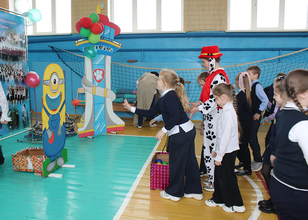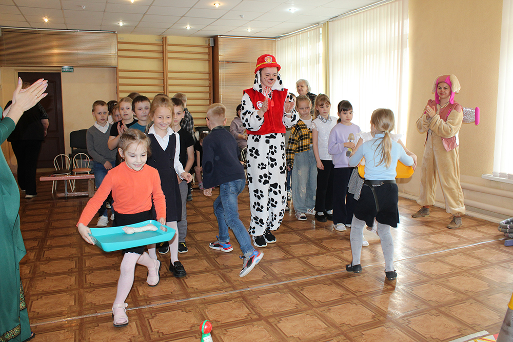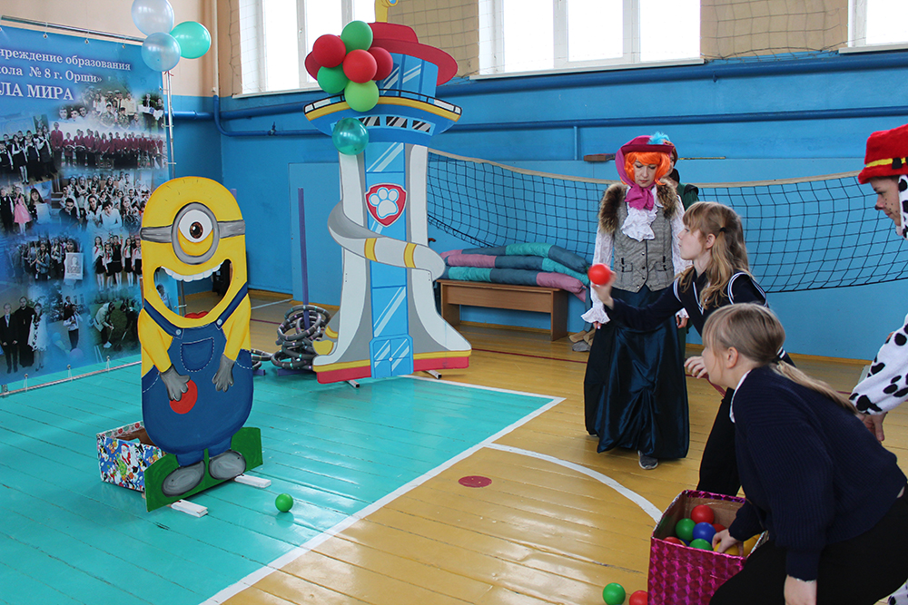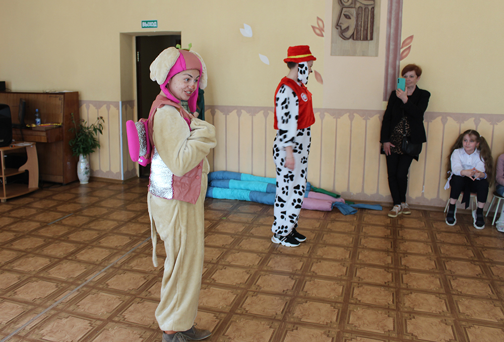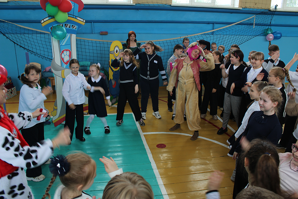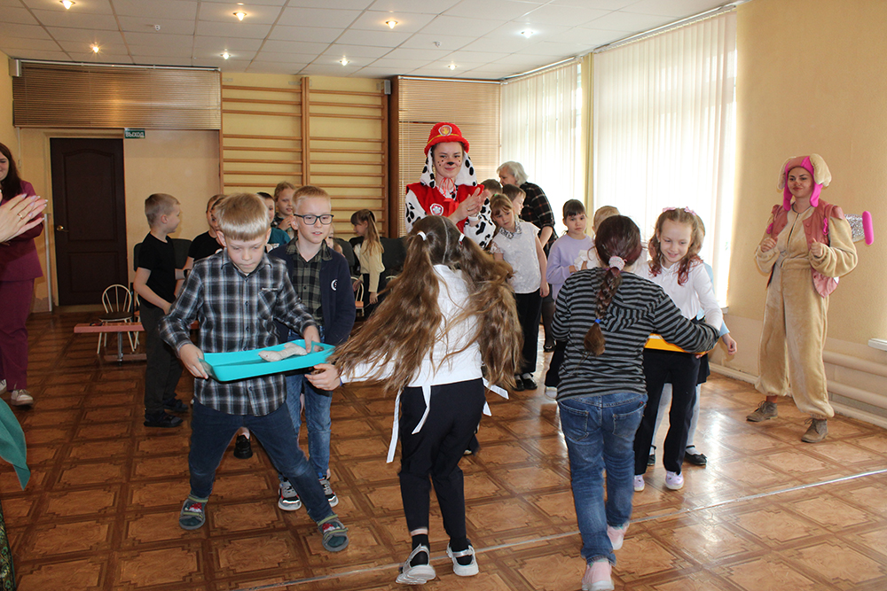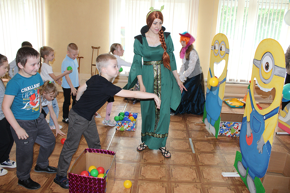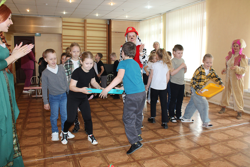 Весёлые и дружные спасатели Скай и Маршалл (Бараш Евгения, Минько Кристина), герои популярного мультсериала «Щенячий патруль», предложили ребятам отправиться вместе с ними в лето на самолёте. Весёлый танец на ускорение «Смотрите в небе самолёт» подарил девчонкам и мальчишкам хорошее настроение, а игра «Косточка» показала насколько ребята быстрые и ловкие, продемонстрировала их командный дух. Хитрые обманщики Кот Базилио(Самонова Валентина) и Лиса Алиса(Лепешева Екатерина, Межевич Ирина), конечно же, попытались испортить детям празник, похитив у Фионы ключ от лета. Но ребята не поддались на провокации сказочных мошенников, а с лёгкостью выполнили все их задания. Современный флешмоб «Если хочешь танцевать - танцуй, танцуй!», устроенный Лисой Алисой и Котом Базилио, очень понравился всем участникам мероприятия, а игра на меткость «Покорми Миньона» подарила им позитивные эмоции. Фееричным было появление в конце праздника героев популярного среди детей мультфильма «Головоломка» - Радости и Брезгливости - двух из основных персонажей, которые воплощают эмоции.