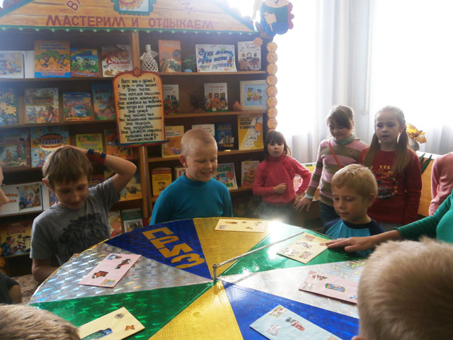 Детская библиотека им. Н.Крупской продолжила активную работу по организации интересного досуга детей в дни школьных осенних каникул. 26 октября библиотекари этой библиотеки пригласили учеников 1-3 классов СШ №5, которые посещают школьный лагерь, на интересное и увлекательное мероприятие - литературную игру «Сказочное «Поле Чудес». Юные читатели с огромным интересом вращали «сказочный» барабан, отвечали на вопросы библиотекаря о героях сказок, и получили огромное удовольствие от самой игры и сладких призов за правильные ответы.