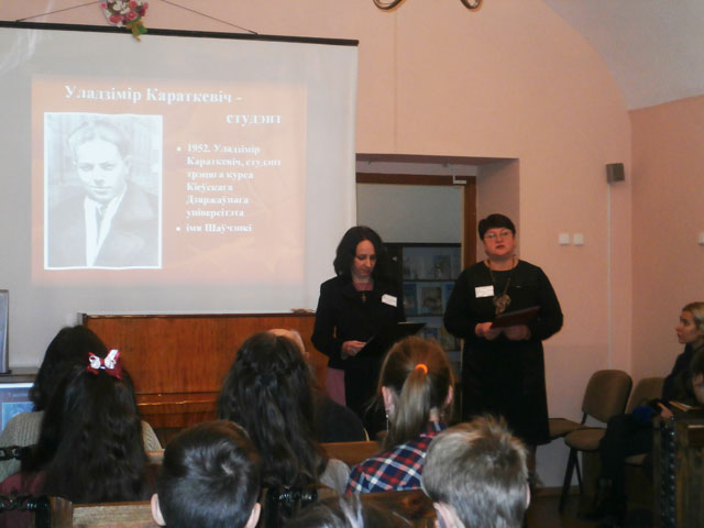 На вечарыну запрасілі У.П.Шафранскага, які асабіста ведаў пісьменніка. Ён расказаў аб школьным жыцці, занятках у драмгуртку разам з маладым У.Караткевічам. Вучні 9 класа школы № 21: Феданенкава А., Смірнова Л., Андрэева В., Сюбаеў І. прачыталі вершы пісьменніка.