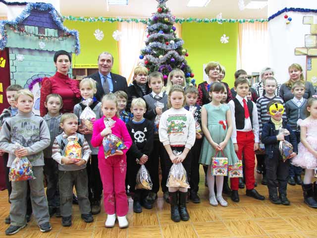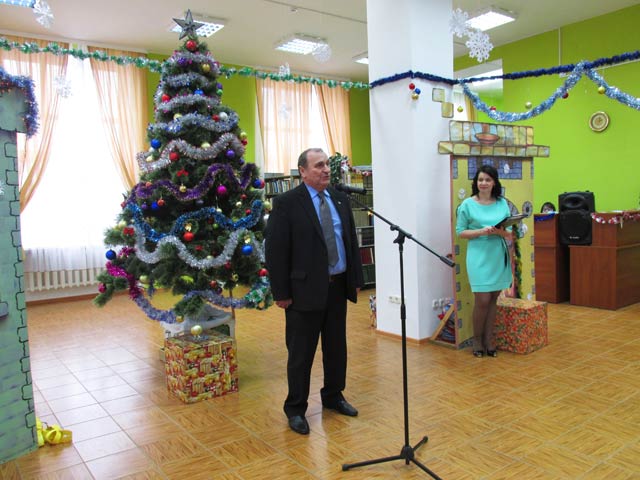 Детей, приглашенных на праздник в библиотеку, с приближающимися Новогодними и Рождественскими праздниками поздравил председатель координационного совета общественных объединений и политических партий г. Орши и Оршанского района Константин Григорьевич Нилов. Он искренне пожелал всем детям здоровья, добра и благополучия. А далее каждый ребенок получил сладкий новогодний подарок.