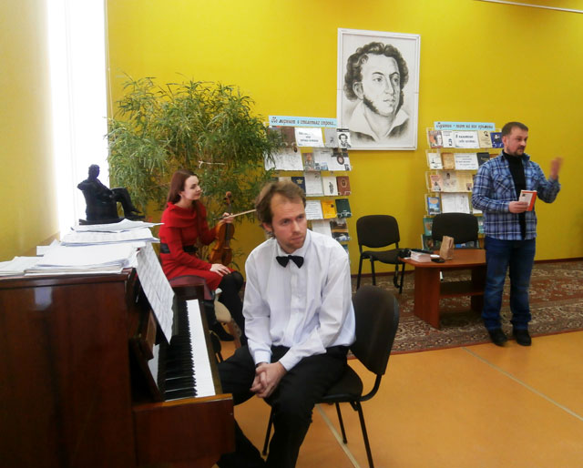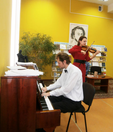 Отдельно хочется рассказать о проекте «Добрые книги», который был реализован в центральной библиотеке им. А.С.Пушкина. Здесь прошла творческая встреча с молодым поэтом и журналистом Змитером Артюхом под названием «Для радости, которую Бог нам дал». Его творческая группа в лице музыкантов Юлии Лебеденко и Тимура Щербакова заворожили слушателей необыкновенным исполнением классических произведений, лирических стихотворений и романсов. Особенно понравилось присутствующим выступление Юлии Лебеденко и это не случайно. Ведь она не только виртуозно играла на скрипке, но и душевно исполняла романсы. Сейчас скрипачка, певица, лауреат международных конкурсов и фестивалей проживает в Вене и радует своим творчеством не только зарубежных почитателей её таланта, но и соотечественников не забывает, участвует в благотворительных проектах, занимается духовным просвещением, чему яркое подтверждение её участие в фестивале «Кладезь» 2016 года.