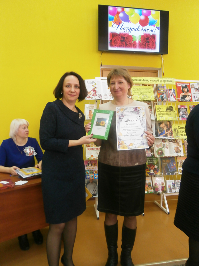 Веремьёва Анна Валерьевна  - главный библиотекарь отдела комплектования и обработки удостоена звания «Мисс Очарование». Гусева Наталья Николаевна – библиотекарь Устенской сельской библиотеки удостоена звания «Мисс Эрудиция». Ильинцева Ольга Викторовна – библиотекарь городской библиотеки им.М.Горького удостоена звания «Мисс Оригинальность». Перова Елена Анатольевна – библиотекарь Заболотской сельской библиотеки удостоена звания «Мисс Затейница». Пучкова Ирина Леонидовна – библиотекарь Крапивенской сельской библиотеки решением жюри удостоена звания «Мисс Творчество»,  также ей был присужден приз зрительских симпатий.