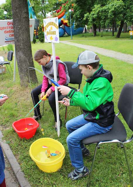 Мальчишки и девчонки, а также их родители, с удовольствием приняли участие в «Литературной лотерее», сыграли с библиотекарями в «Крестики-нолики», «Весёлую рыбалку», проявили меткость при игре в «Дартц».