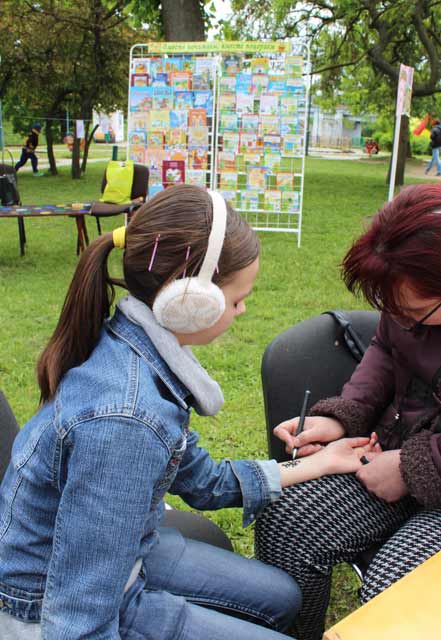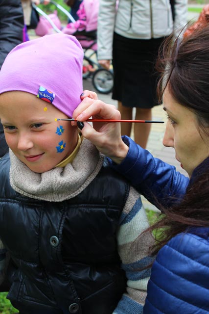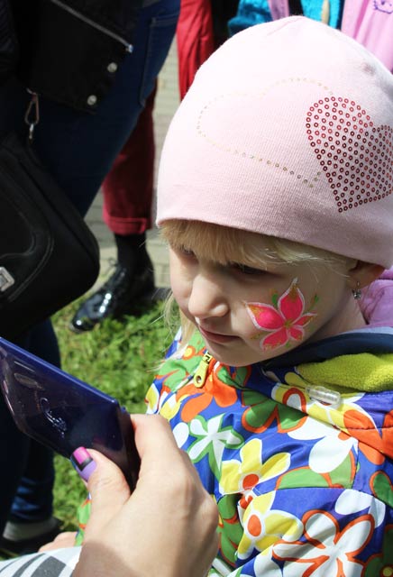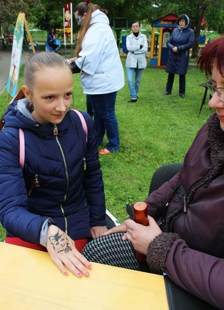 Особой популярностью пользовался аквагрим. Стараниями библиотекарей Юлии Слуцкой, Анастасии Павловой и Татьяны Квашук на лицах ребят вспыхнули яркие сюжеты и расцвели прекрасные цветы.