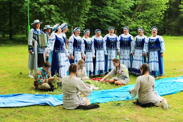 Прыгожыя дзяўчынкі - ўдзельніцы ансамбля “Весялушкі” і народны ансамбль народнай музыкі “Крынічанька” захапілі гасцей паказам  беларускіх народных абрадаў “Купалле” і “Калясо”.