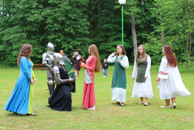 Зазірнуць у мінулае гасцям  свята паэзіі  дапамаглі ўдзельнікі клуба гістарычнай рэканструкцыі “Ліберум вольдус” ДК г.п. Балбасава, якія паказалі майстэрства бою на мячах і сярэдневяковыя танцы.