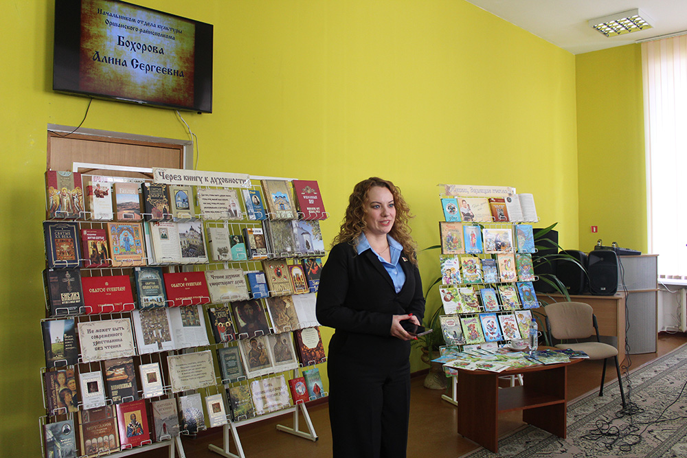 Директор государственного учреждения культуры «Оршанская централизованная библиотечная система» Кулагина Оксана Михайловна пожелала всем теплых, душевных и интересных встреч в библиотеках и чтения полезных для души книг православных авторов, которыми регулярно пополняется фонд Кафедры православной литературы Центральной библиотеки им. А.С. Пушкина.