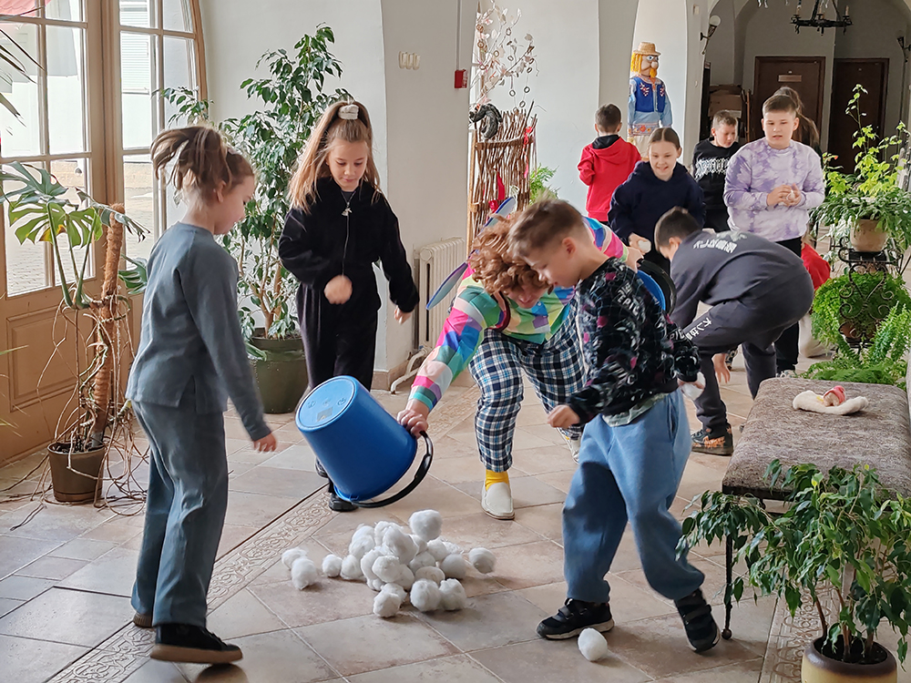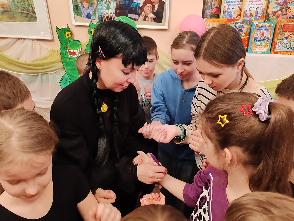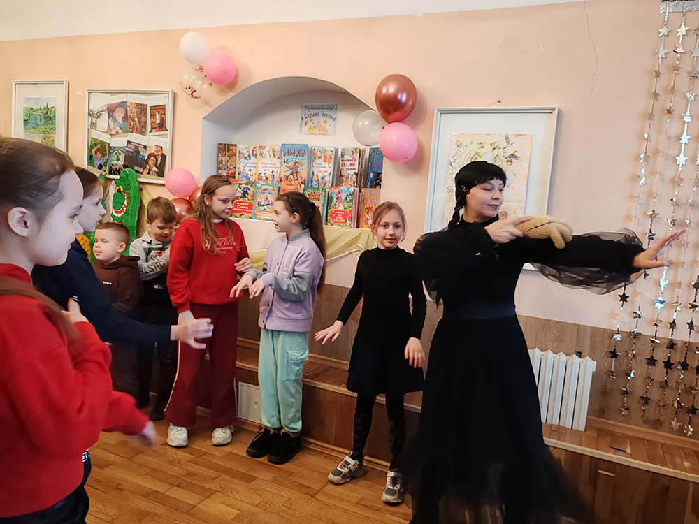 Программа получилась насыщенной и разнообразной. Ребята распутывали «сказочную путаницу» от Уэнсдей и участвовали в магических экспериментах Бабы-Яги с цветными лентами и «Шляпой, угадывающей мысли». Вместе с Карлсоном дети исполнили флешмоб «Самолет», соревновались в игре «Держи-хватай», а затем переместились в коридоры для эстафет и шуточного «боя снежками». В конкурсе «Абракадабра» школьники расшифровывали сложные названия растений (например, узнавали в «ландырожнике» ландыш и подорожник), а также разгадывали тематический филворд.
