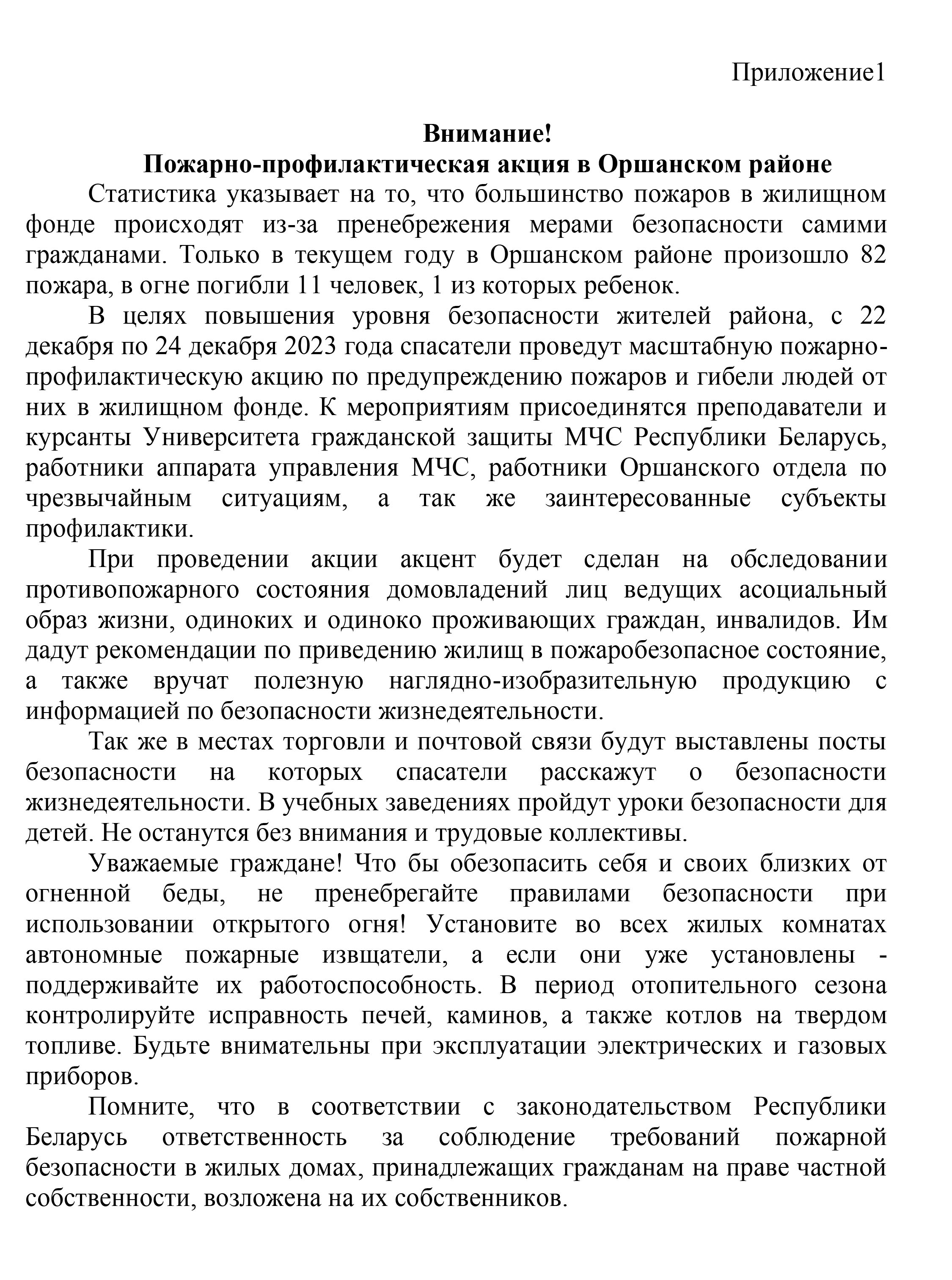 В целях повышения уровня безопасности жителей района, с 22 декабря по 24 декабря 2023 года спасатели проведут масштабную пожарно-профилактическую акцию по предупреждению пожаров и гибели людей от них в жилищном фонде.